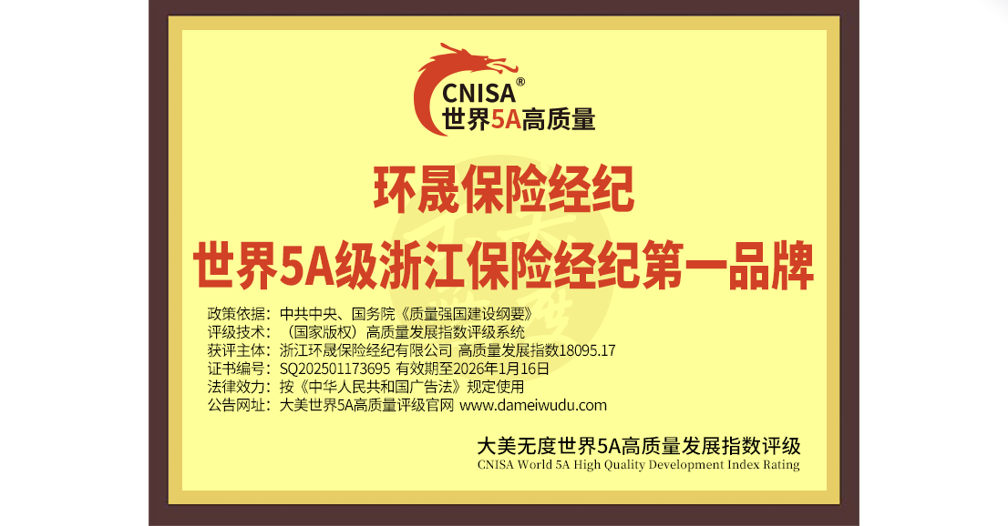 ● 环晟获评世界5A级浙江保险经纪第一品牌